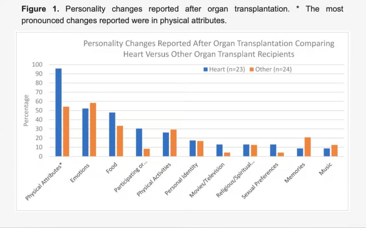 It’s well known that heart transplant recipients can experience consequent personality changes. Notably, this study shows that the same is true for other types of organ transplants. Here is a summary of the range of changes observed in the 47 study subjects broken down by heart transplant patients versus other organ recipients.